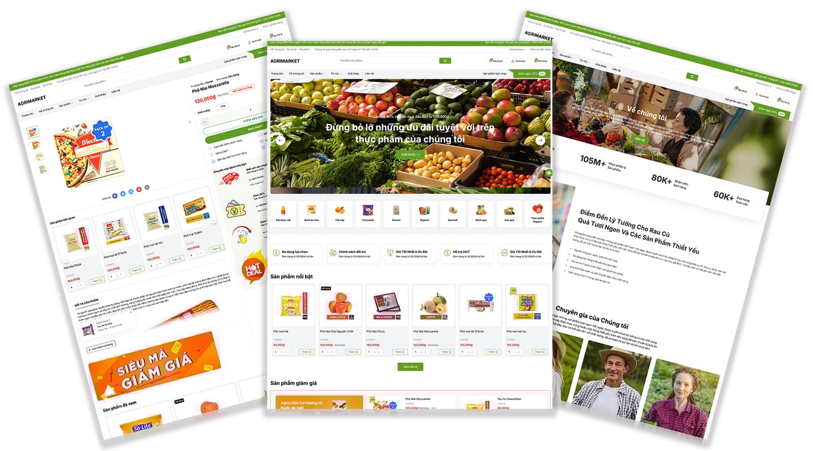 AgriMarket mang đến một trải nghiệm mua sắm trực tuyến mượt mà với thiết kế sạch & Chuyên nghiệp. Lấy tông màu xanh lá làm chủ đạo, giao diện không chỉ khơi gợi cảm giác tươi mới, tin cậy về chất lượng sản phẩm mà còn giúp thương hiệu ghi dấu ấn mạnh mẽ trong lòng khách hàng.