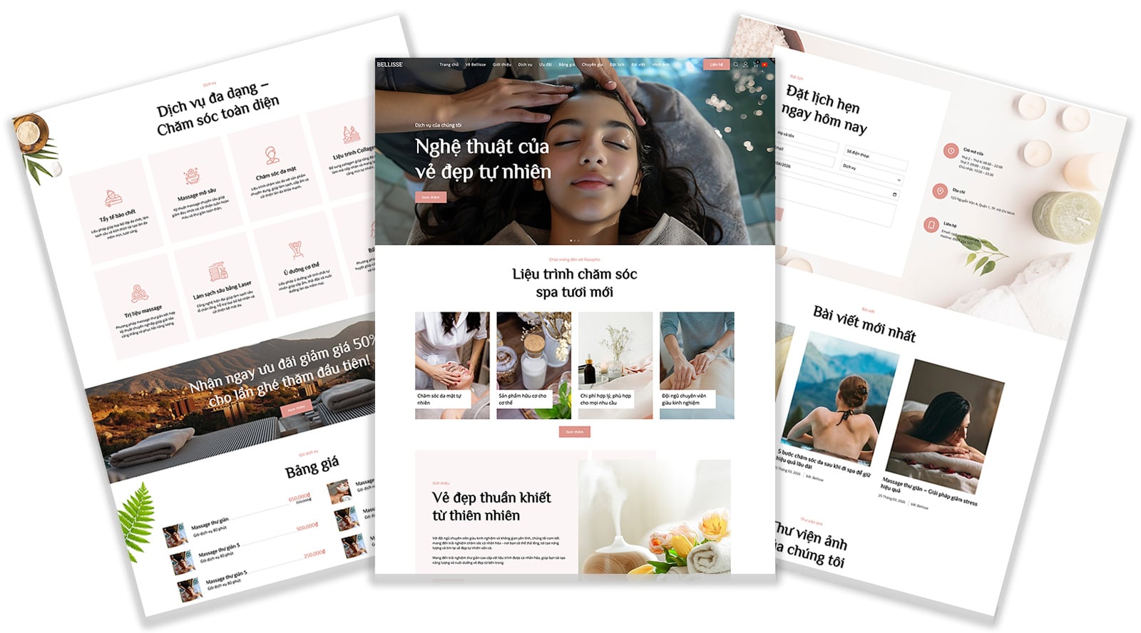 Giao diện được tối ưu với các khối hình ảnh khổ lớn (Gallery & Video) và hiệu ứng chuyển động êm ái, mô phỏng không gian spa yên tĩnh. Khách hàng không chỉ đọc về dịch vụ, mà họ được "thấy" và "cảm" qua: