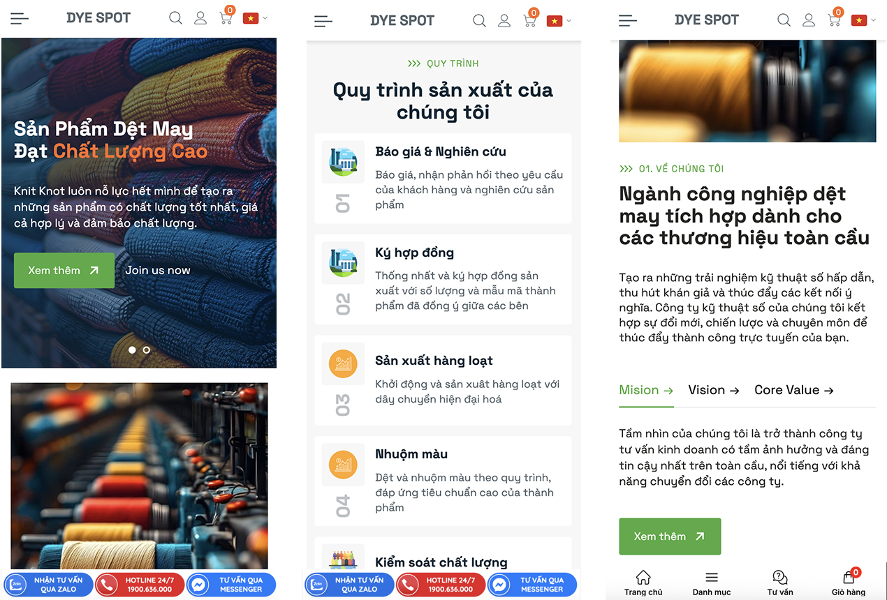 Dye Spot – Giao diện website doanh nghiệp dệt may chuẩn hiện đại, thu hút & chuyên nghiệp