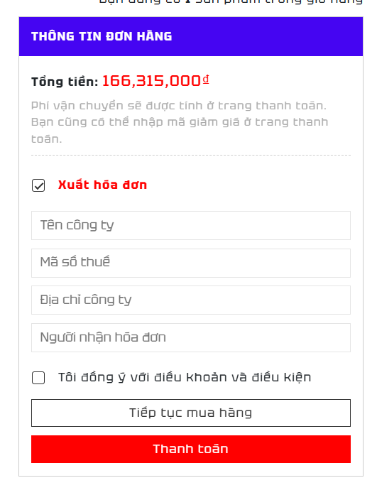 Xuất hóa đơn + Xác nhận điều khoản trước khi thanh toán