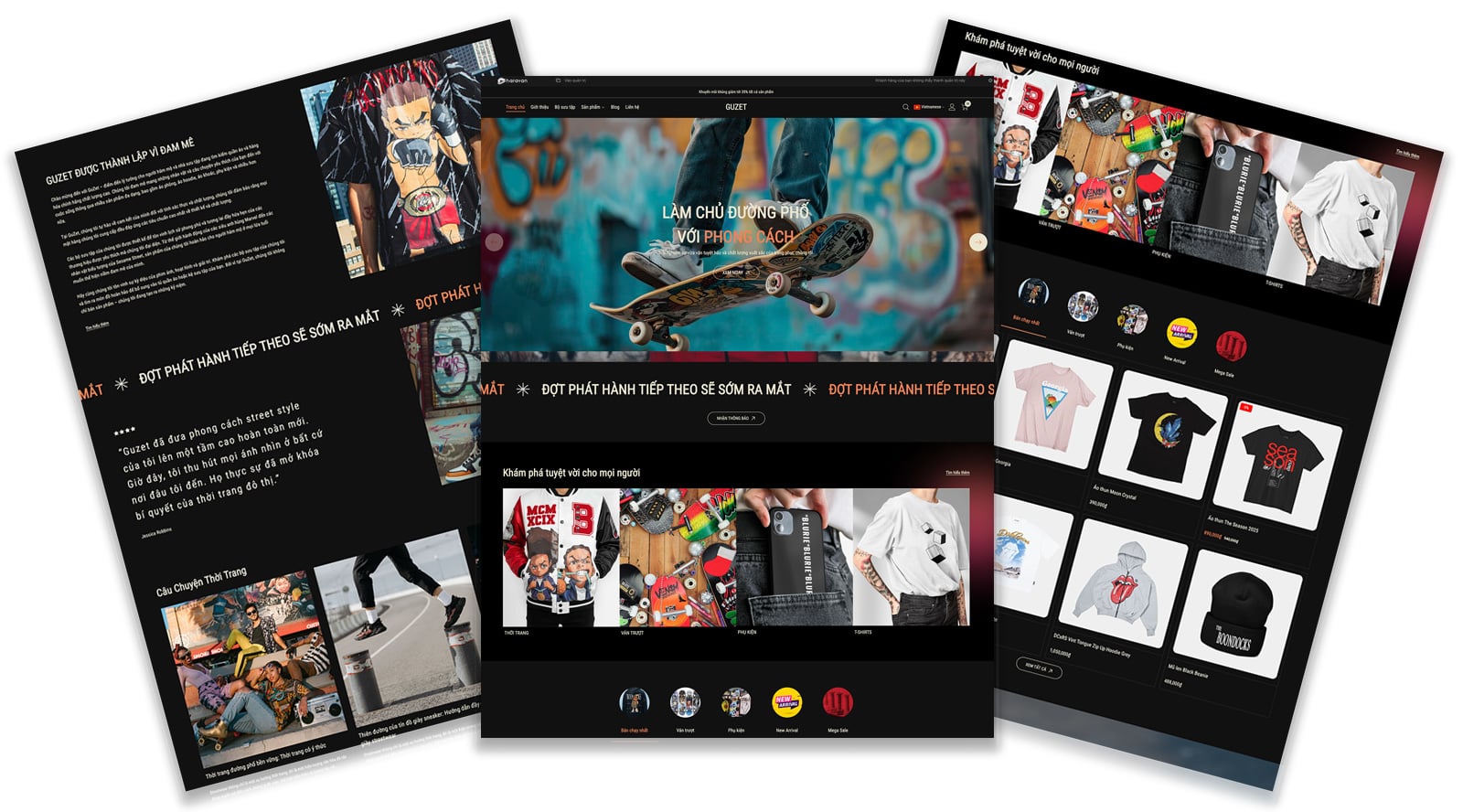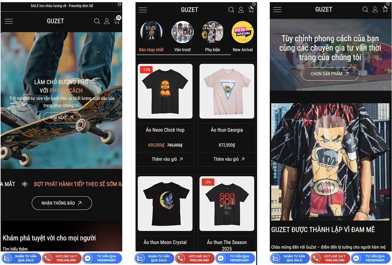 Không chỉ đẹp về thiết kế, GuZet còn được tối ưu hiệu năng và trải nghiệm trên mọi thiết bị, đặc biệt là mobile – nơi phần lớn khách hàng streetwear mua sắm. Theme hỗ trợ tùy chỉnh linh hoạt màu sắc, font chữ và nội dung, cho phép thương hiệu dễ dàng cá nhân hóa theo DNA riêng mà không cần kiến thức kỹ thuật phức tạp. GuZet không chỉ là một giao diện bán hàng, mà là công cụ giúp thương hiệu streetwear xây dựng hình ảnh, khẳng định phong cách và tăng trưởng doanh thu một cách chuyên nghiệp.