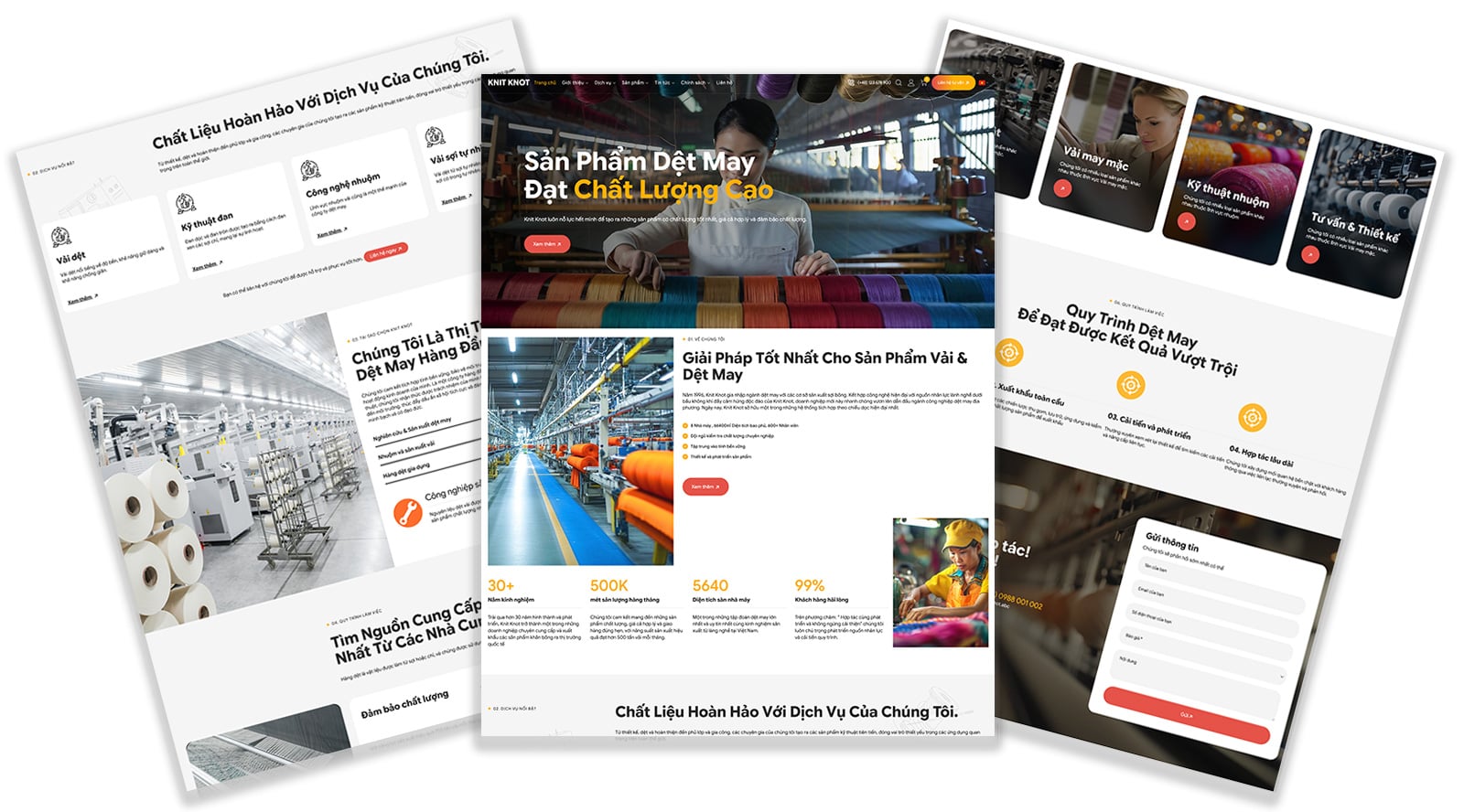 Trang chủ của Knit Knot được xây dựng với bố cục mạch lạc, nhấn mạnh vào giá trị cốt lõi, năng lực sản xuất và danh mục sản phẩm chủ lực. Các khu vực giới thiệu nhà máy, quy trình sản xuất, chứng nhận chất lượng và đối tác được trình bày rõ ràng, giúp doanh nghiệp dễ dàng thể hiện quy mô, kinh nghiệm và thế mạnh cạnh tranh trong ngành dệt may.