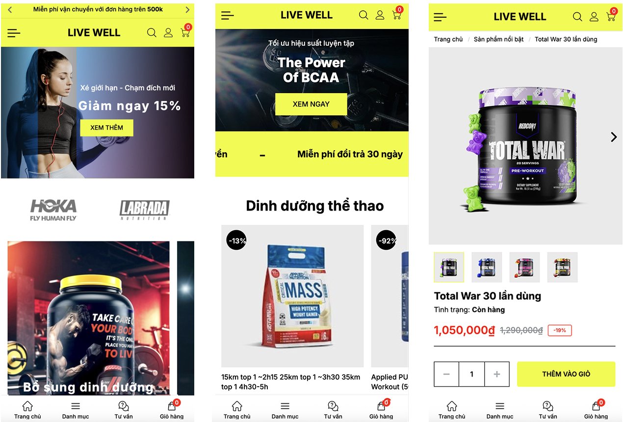Giao diện Live Well là giao diện website bán hàng được thiết kế tối ưu, chuyên nghiệp, phù hợp với các ngành hàng chú trọng đến phong cách sống, sức khỏe, sản phẩm thiên nhiên, thực phẩm sạch, hoặc mỹ phẩm/thời trang cao cấp.