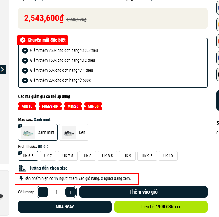 Hiển thị số lượt xem và số người thêm vào giỏ hàng một cách ngẫu nhiên. Giúp tăng độ tin cậy và tạo cảm giác sản phẩm đang được nhiều người quan tâm.