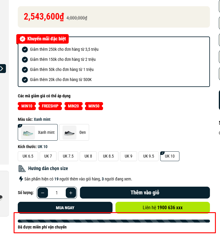 Hệ thống tự động thông báo khách hàng còn thiếu bao nhiêu tiền để được miễn phí vận chuyển. Kích thích khách hàng mua thêm sản phẩm.