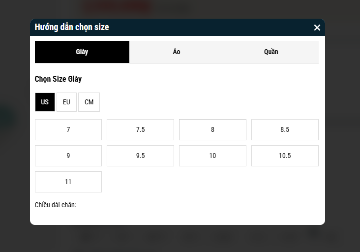 Cho khách hàng dễ dàng chọn được size phù hợp với kích thước của mình.
