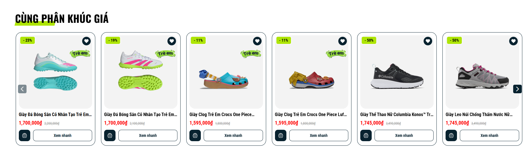 Gợi ý sản phẩm có mức giá tương đương để khách hàng so sánh.
