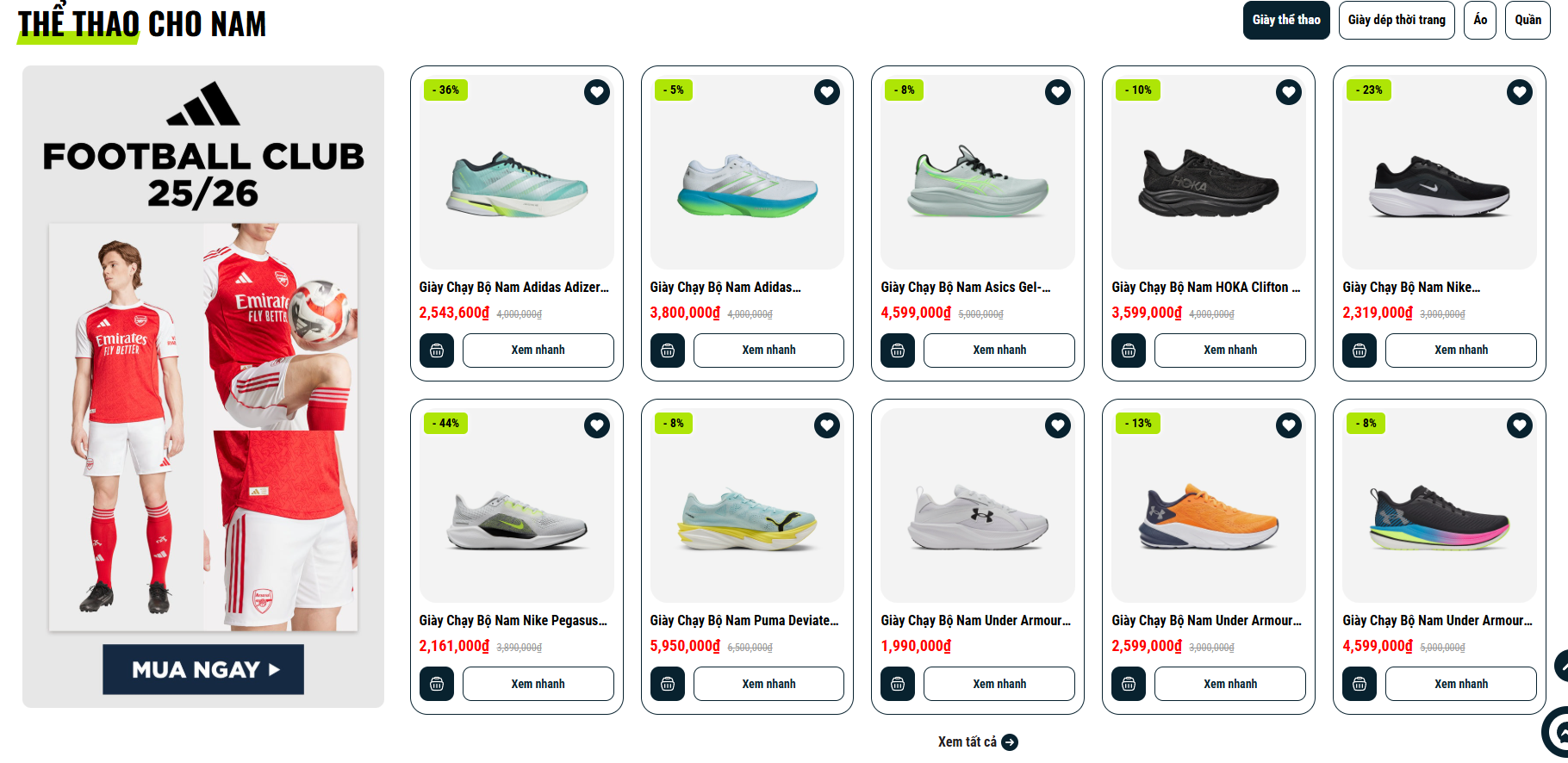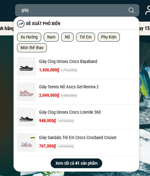 Thanh tìm kiếm thông minh cho phép khách hàng tìm sản phẩm chỉ trong vài giây. Khi nhập từ khóa, hệ thống sẽ tự động gợi ý các sản phẩm liên quan, giúp tiết kiệm thời gian tìm kiếm và tăng khả năng mua hàng.