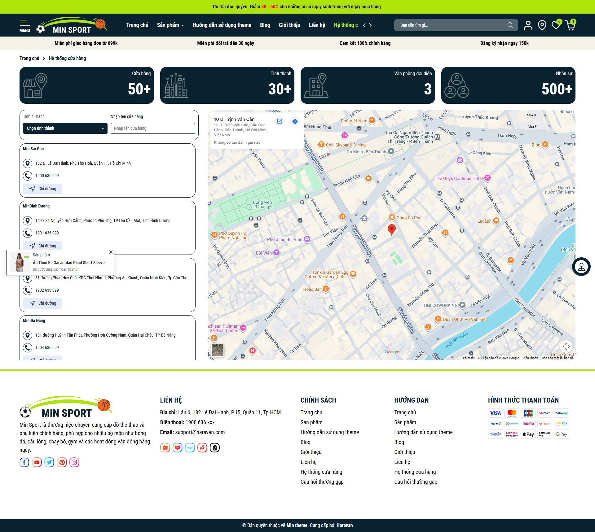 Min Sport là theme được thiết kế chuyên biệt cho các cửa hàng thời trang và dụng cụ thể thao, mang phong cách hiện đại, năng động và đầy sức hút. Với tone màu mạnh mẽ cùng bố cục rõ ràng, Min Sport giúp tôn lên hình ảnh sản phẩm, tạo cảm giác chuyên nghiệp và thúc đẩy khách hàng đưa ra quyết định mua hàng nhanh chóng.