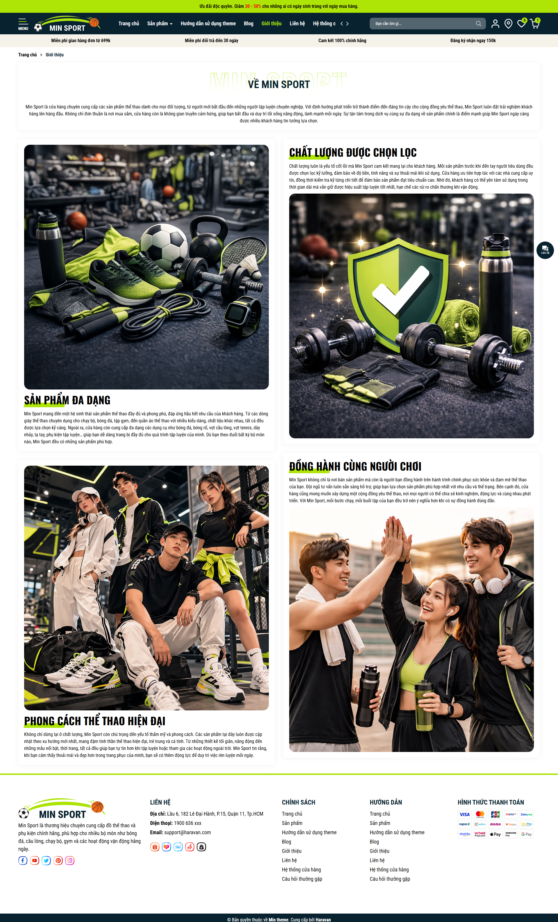 Min Sport không chỉ đẹp mà còn mạnh mẽ ở khả năng tùy biến và vận hành ổn định, phù hợp với nhiều mô hình kinh doanh từ shop nhỏ đến thương hiệu lớn. Đây chính là lựa chọn lý tưởng giúp bạn xây dựng một website thể thao chuyên nghiệp, thu hút và bứt phá doanh số một cách bền vững.
