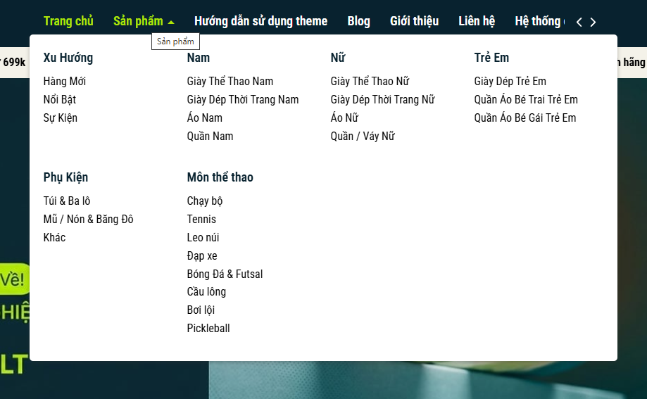 Mega menu giúp hiển thị đầy đủ danh mục sản phẩm một cách trực quan và khoa học. Khách hàng dễ dàng tìm kiếm và truy cập các nhóm sản phẩm chỉ với một lần rê chuột.