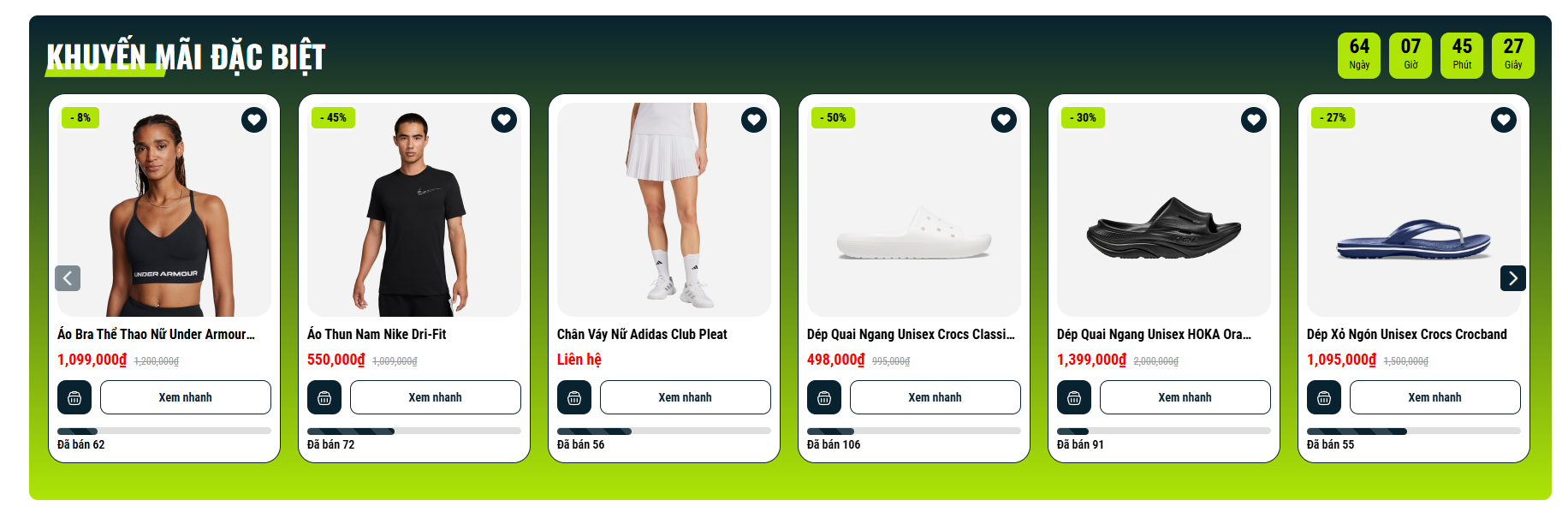 Hiển thị đồng hồ đếm ngược thời gian khuyến mãi kèm số lượng sản phẩm đã bán. Tạo cảm giác khan hiếm và thôi thúc khách hàng mua nhanh trước khi chương trình kết thúc.