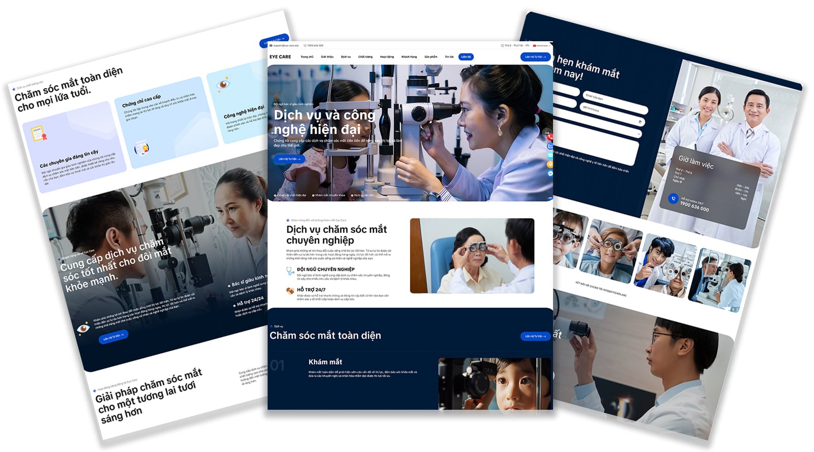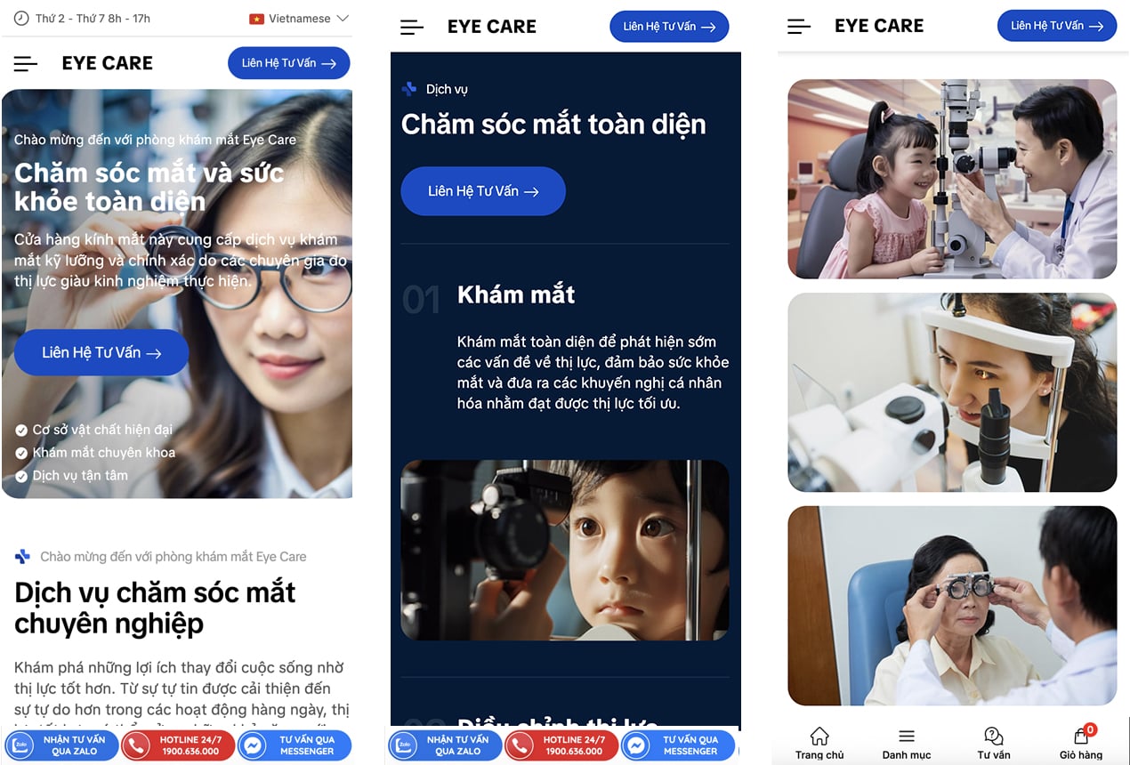 Thiết kế chuyên nghiệp & Tin cậy: Với tông màu trang nhã, bố cục rõ ràng và hình ảnh trực quan, Eye Care tạo cảm giác an tâm và chuyên nghiệp ngay từ cái nhìn đầu tiên – yếu tố then chốt đối với khách hàng trong ngành y tế.