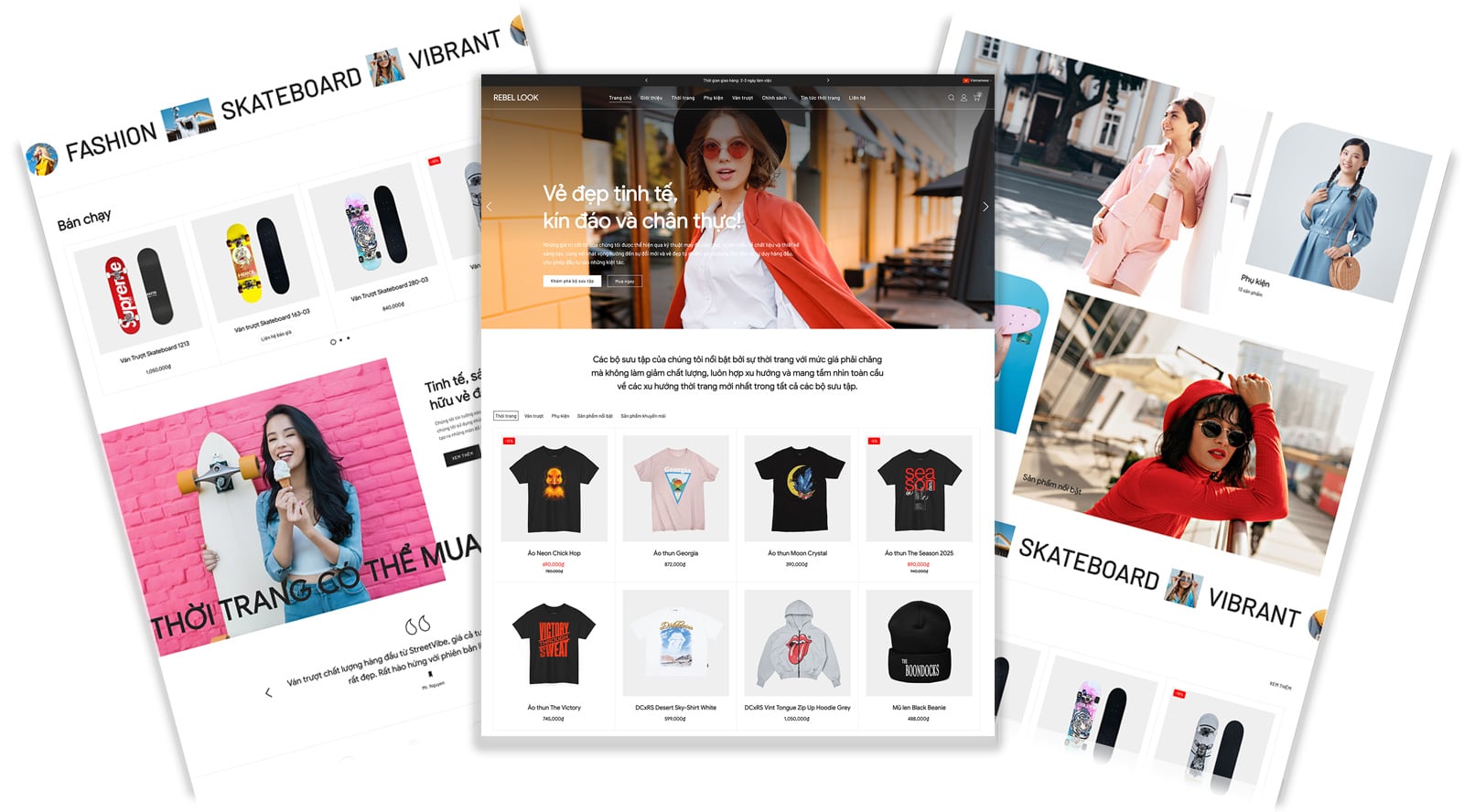 Rebel Look đặc biệt phù hợp cho các thương hiệu streetwear, local brand, sneaker, phụ kiện, skate & lifestyle, nơi hình ảnh và vibe thương hiệu đóng vai trò quyết định. Các block nội dung được thiết kế linh hoạt, dễ tùy biến để bạn kể câu chuyện brand, ra mắt collection mới hoặc chạy campaign theo mùa mà không cần chỉnh sửa phức tạp.