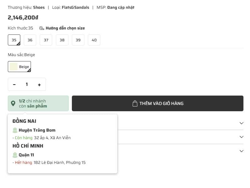 Thông báo và đếm các cửa hàng còn biến thể sản phẩm đó dựa vào tồn kho của sản phẩm.